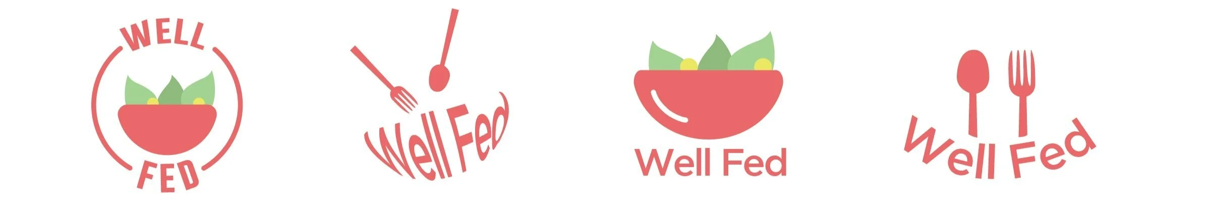 For the first iteration of logos, I used a red color with a sans serif look for a cleaner and more modern look. Additionally, I used a salad bowl and utensils to connect the logo to the theme of food.